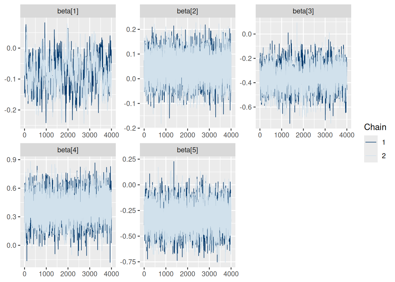 #> beta[5] -0.31483 0.12787 0.0014296 0.0017749